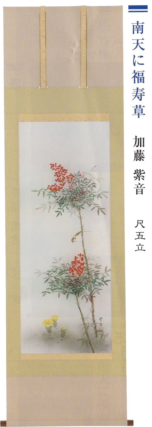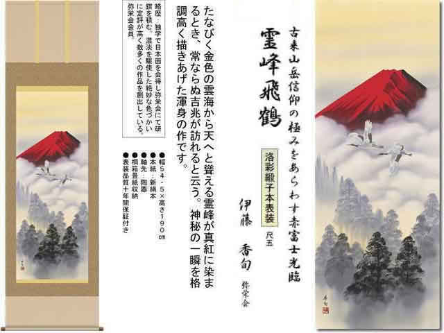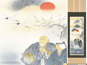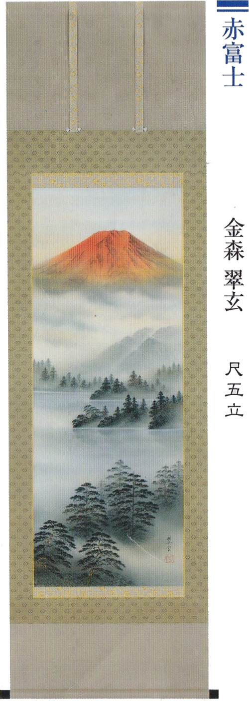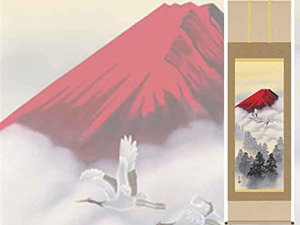 赤富士・松竹梅・鶴亀などの慶祝・縁起画は、贈答用としても喜ばれる掛軸。